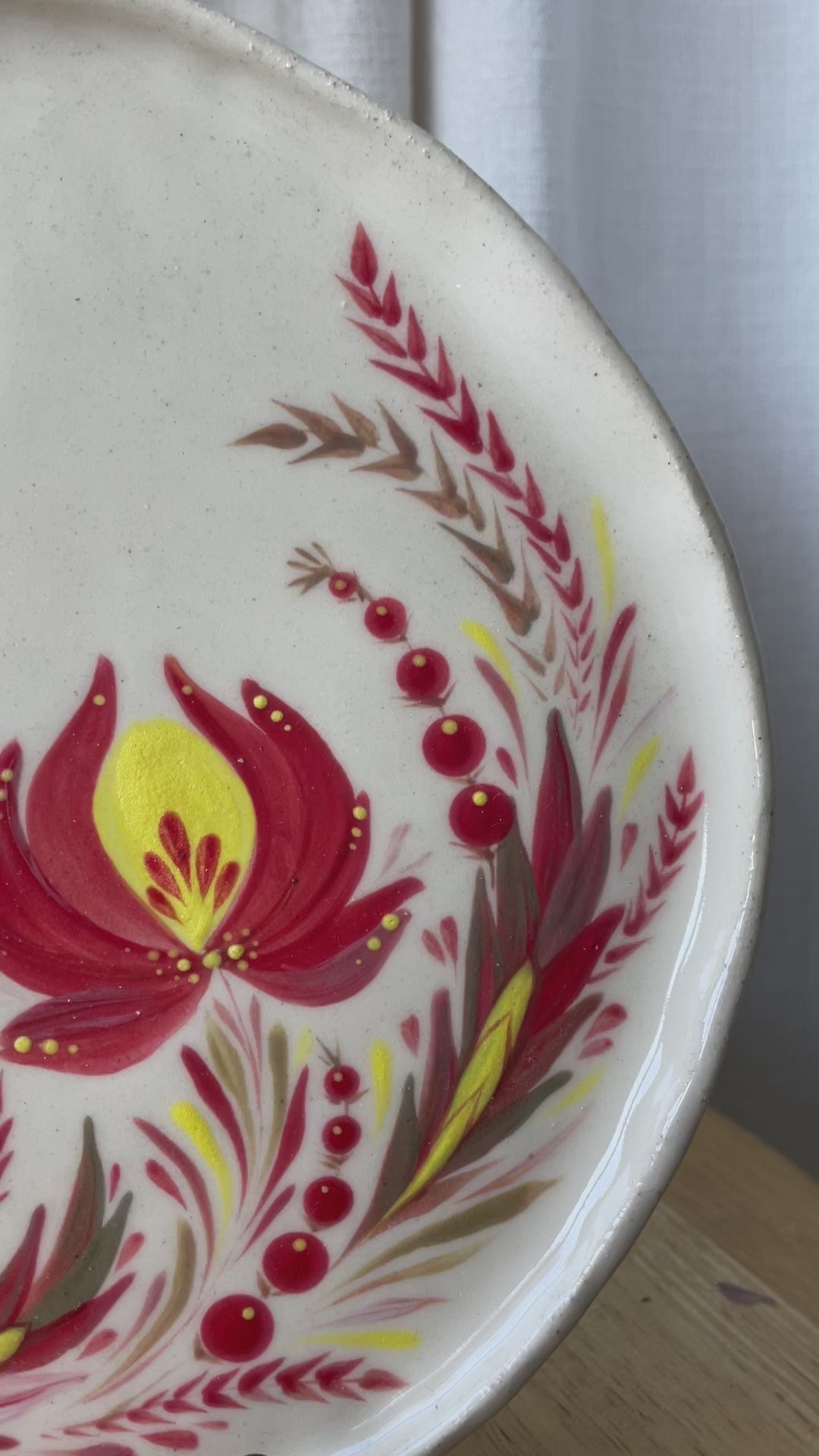 Hand painted ceramic plate, hand painted by Marina Malyarenko, made of clay by Ganna Demidova.