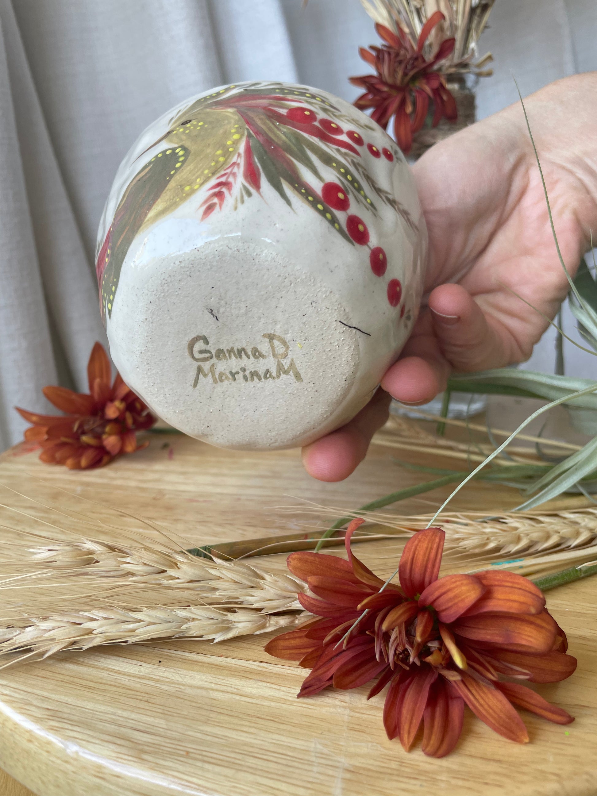Collaboration of two artists. Hand painted by Marina Malyarenko, made of clay by Ganna Demidova