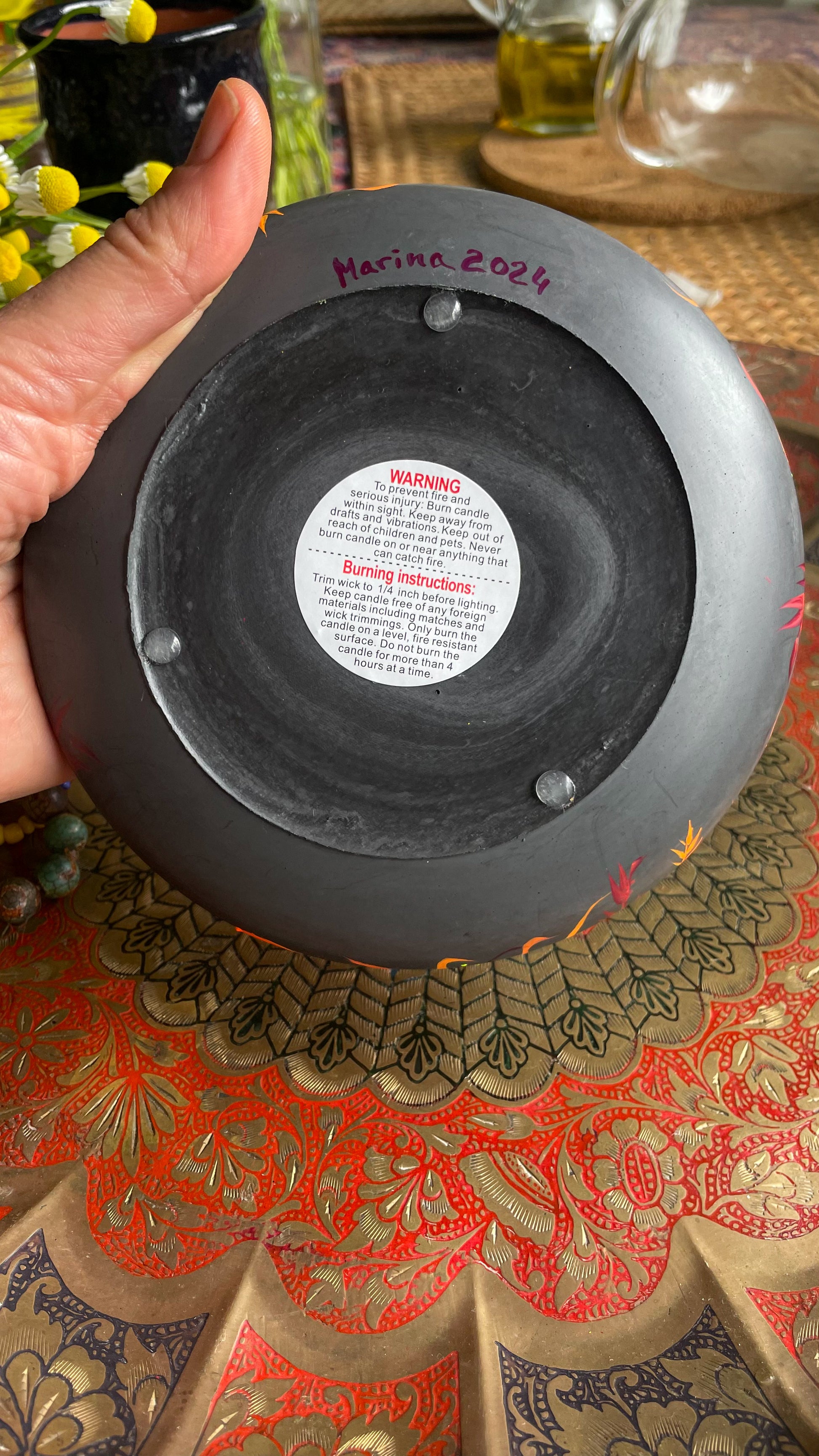Candle, hand-painted by artist Marina Malyarenko, boasts a unique design that adds an artistic touch to any space. Concrete container hold standard size tea light candle made of bee wax or soy wax(your choice), extra tea light candles will be added to your order.