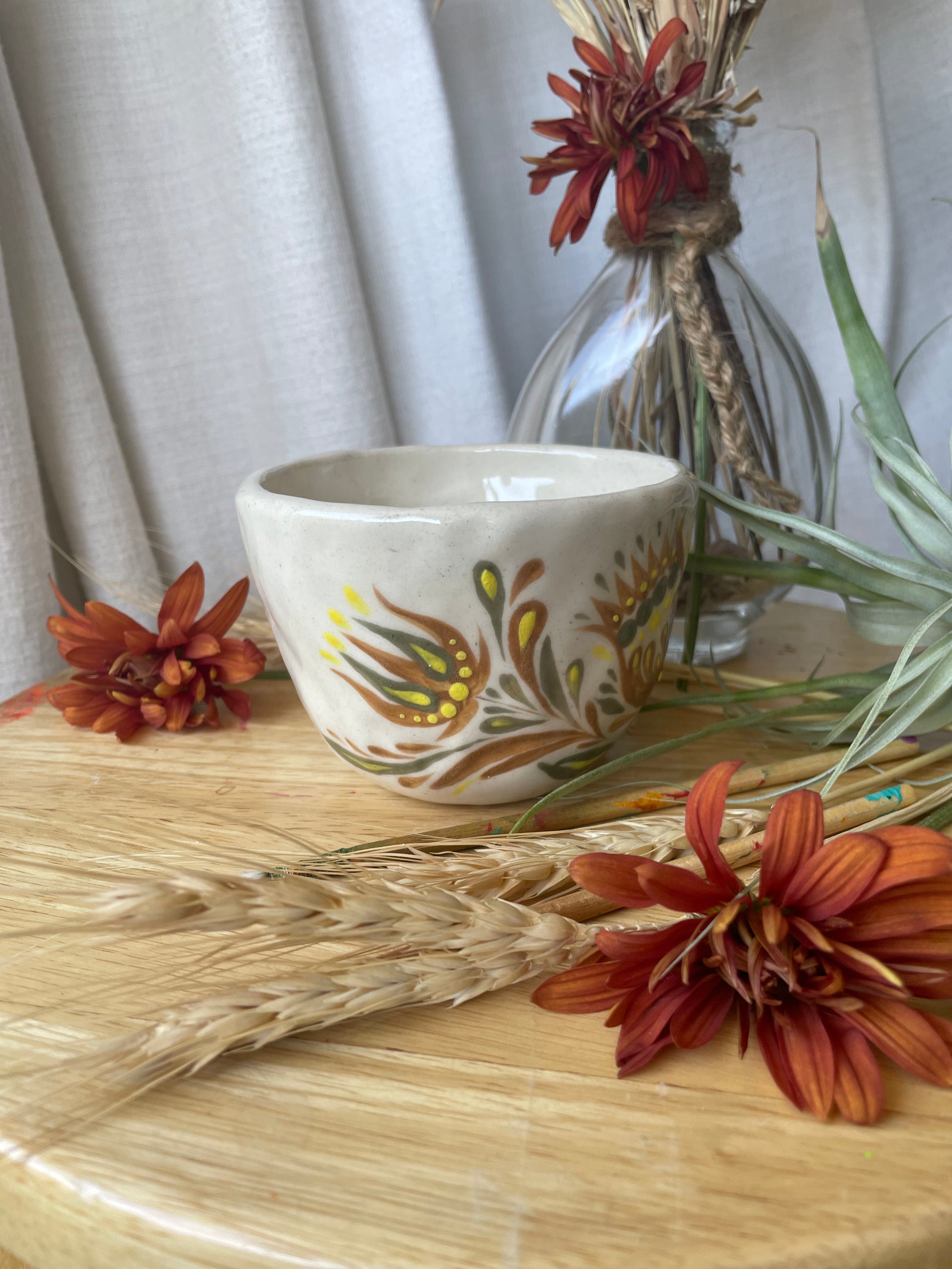 Hand painted ceramic mug made by Ganna Demidova and hand painted by Marina Malyarenko.
