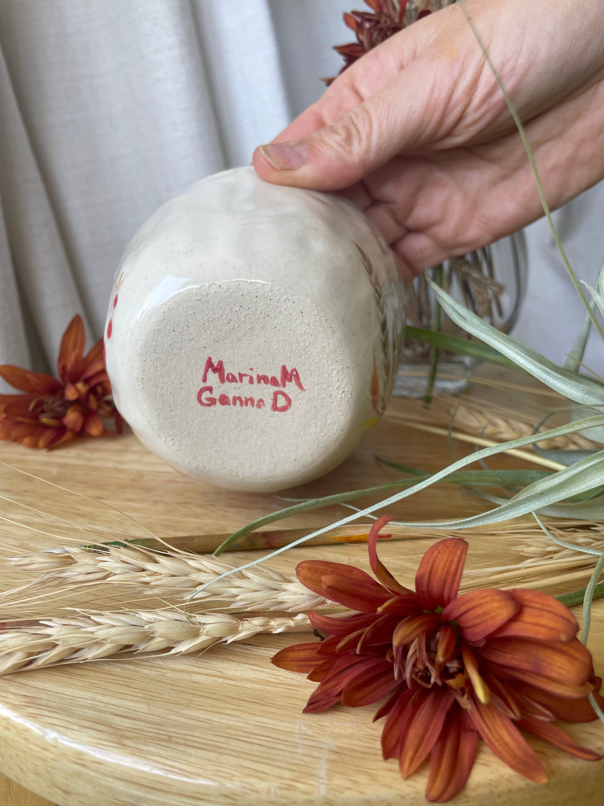 Collaboration of two artists. Hand painted by Marina Malyarenko, made of clay by Ganna Demidova