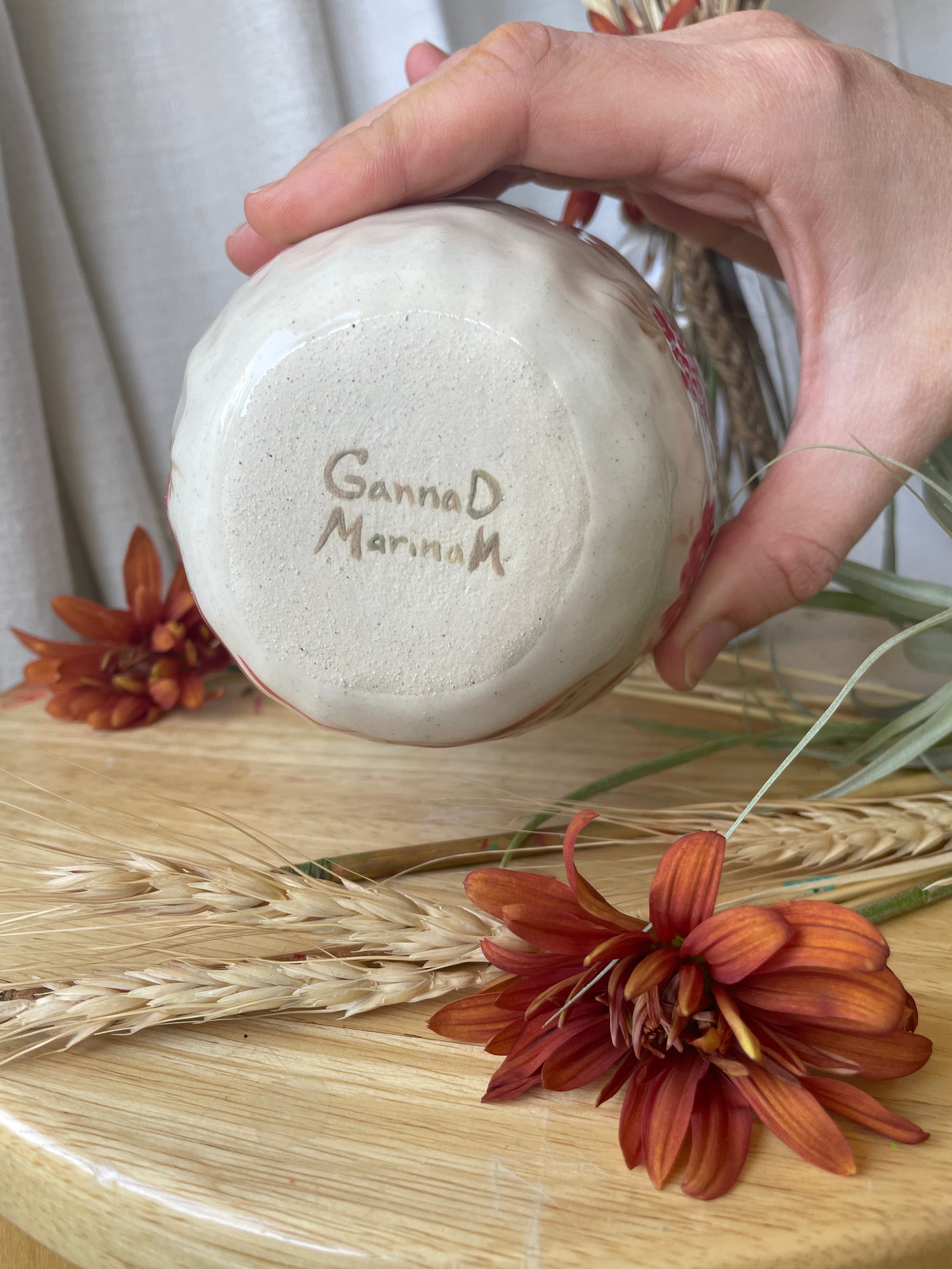 Collaboration of two artists. Hand painted by Marina Malyarenko, made of clay by Ganna Demidova