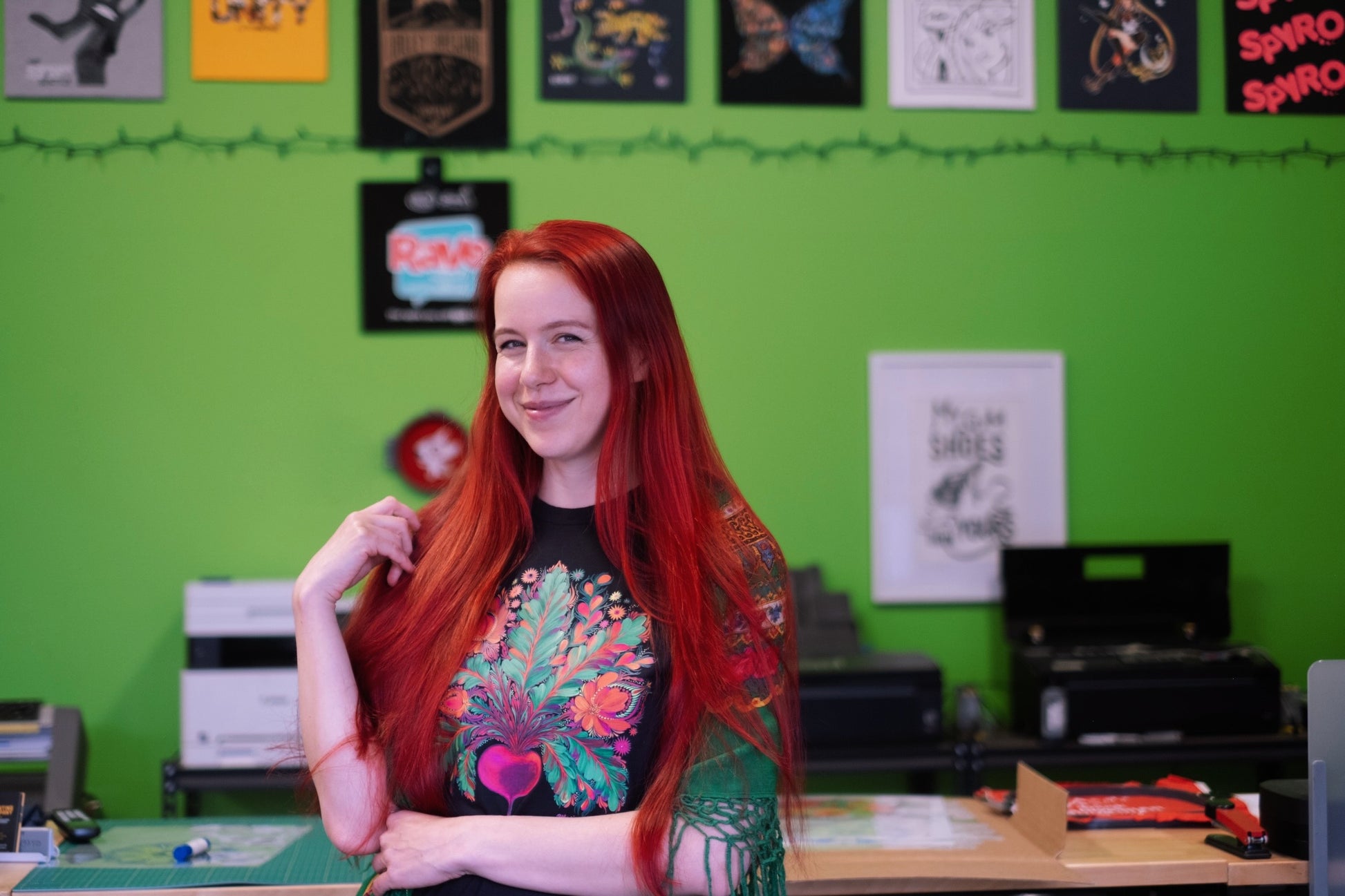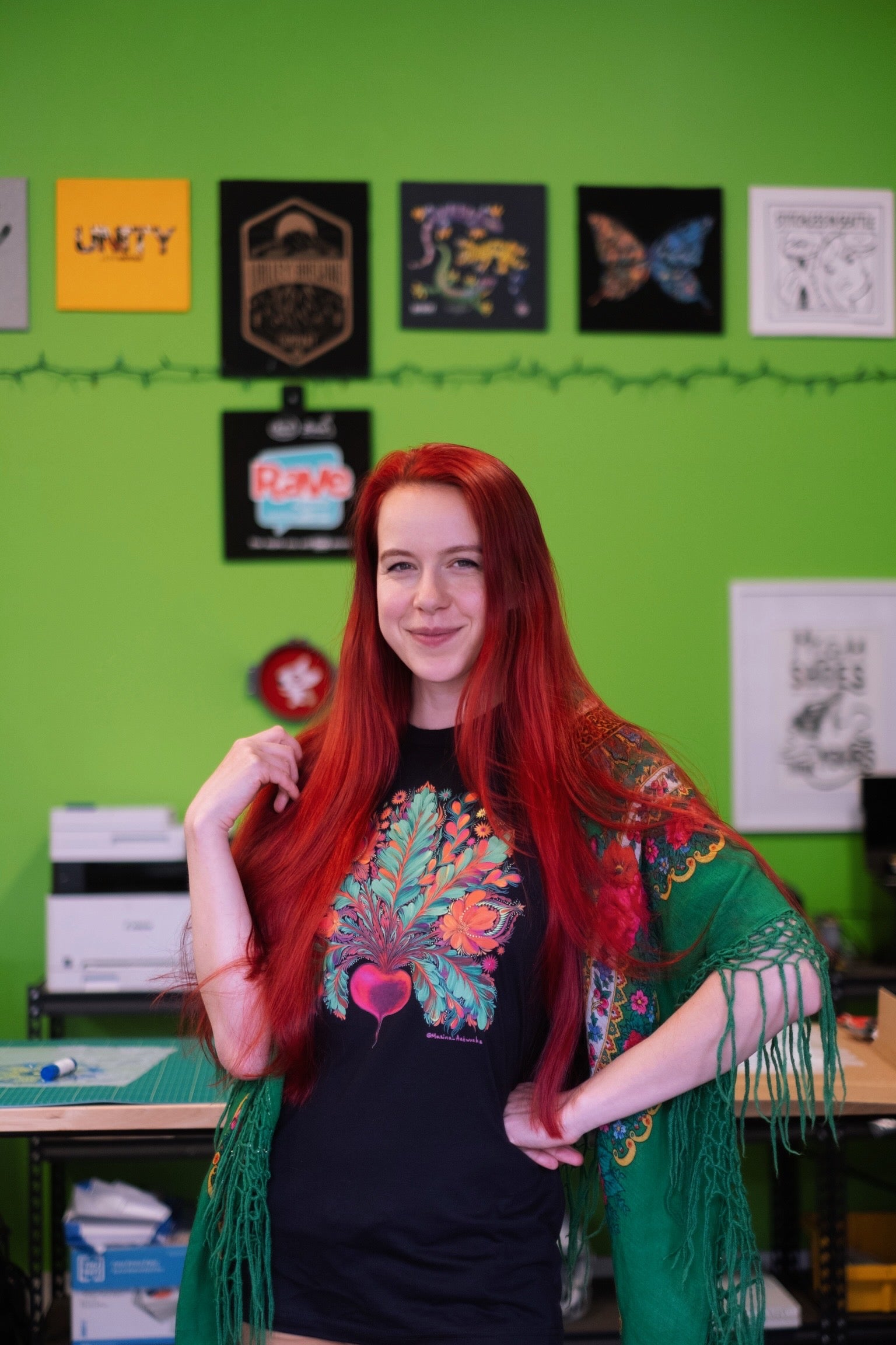 T shirt with print of painting Beetroot by artist Marina Malyarenko.