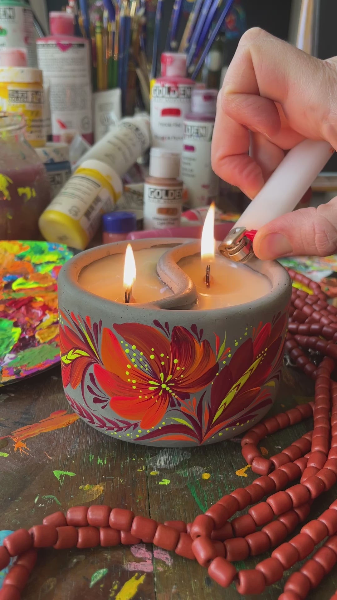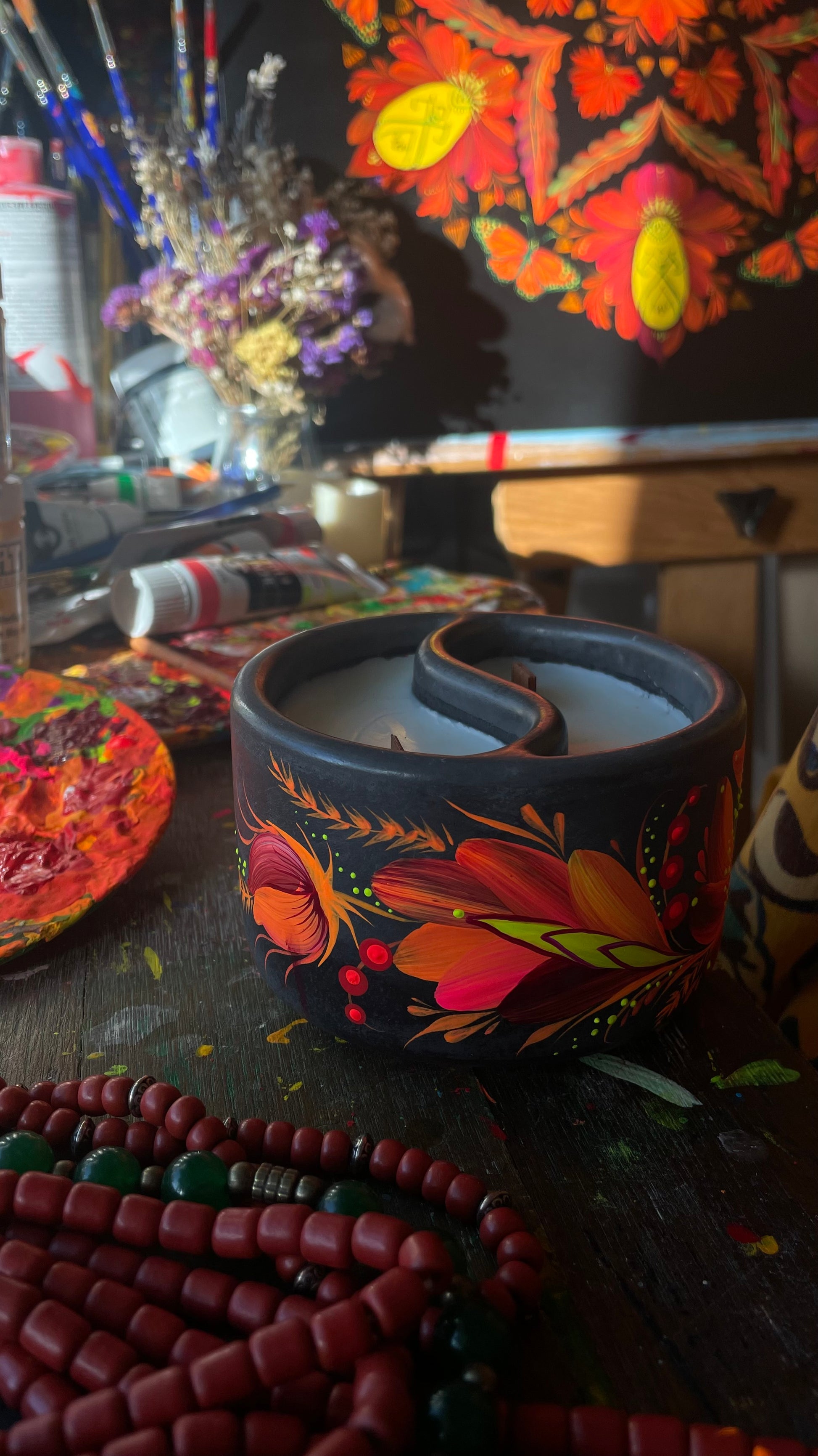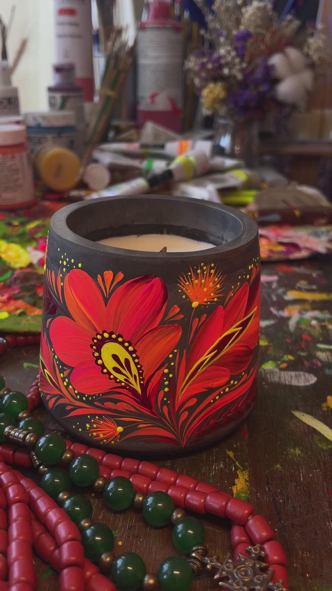 Indulge in the allure of custom-made candles crafted just for you. Each candle, hand-painted by artist Marina Malyarenko, boasts a unique design that adds an artistic touch to any space.