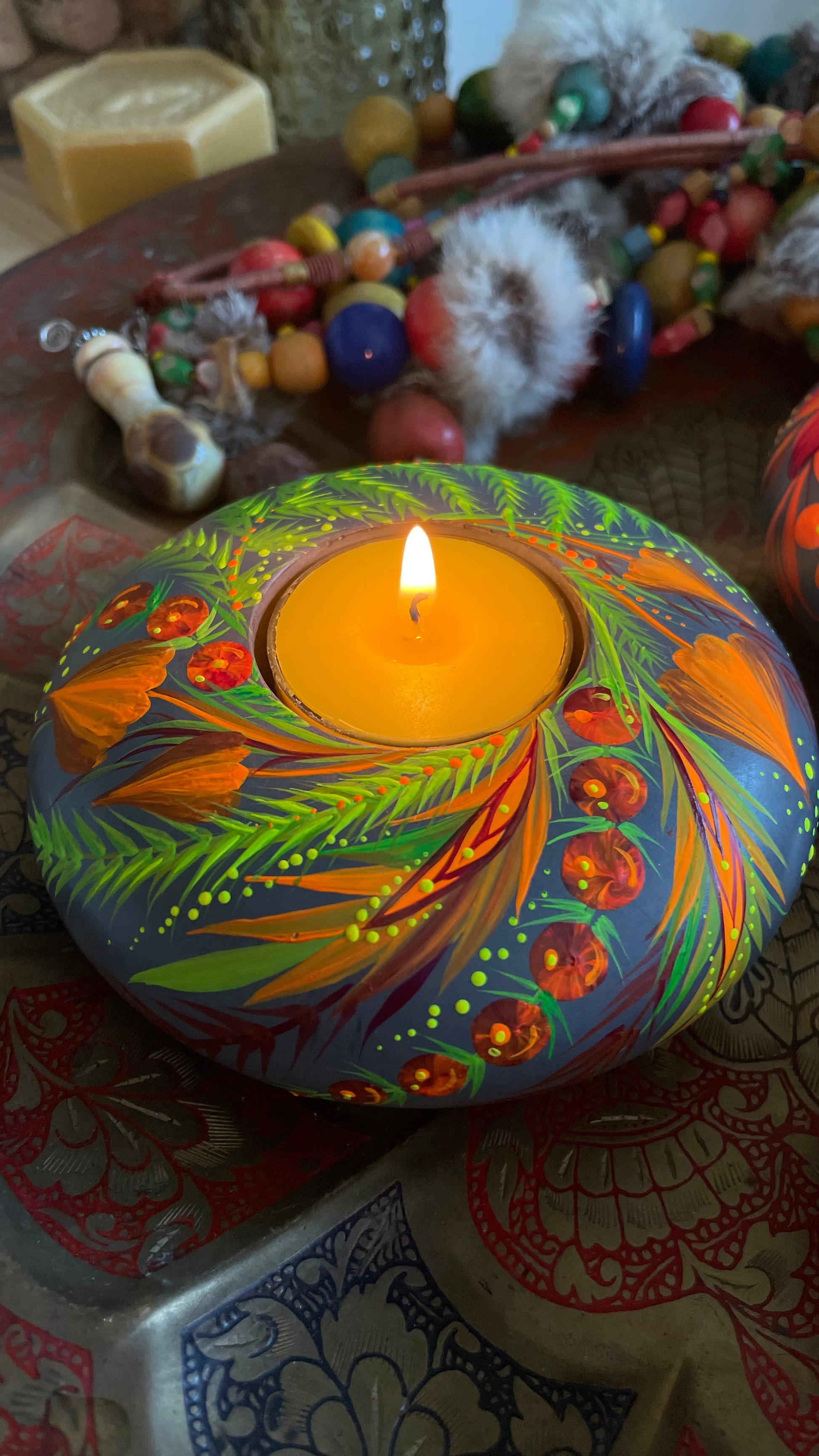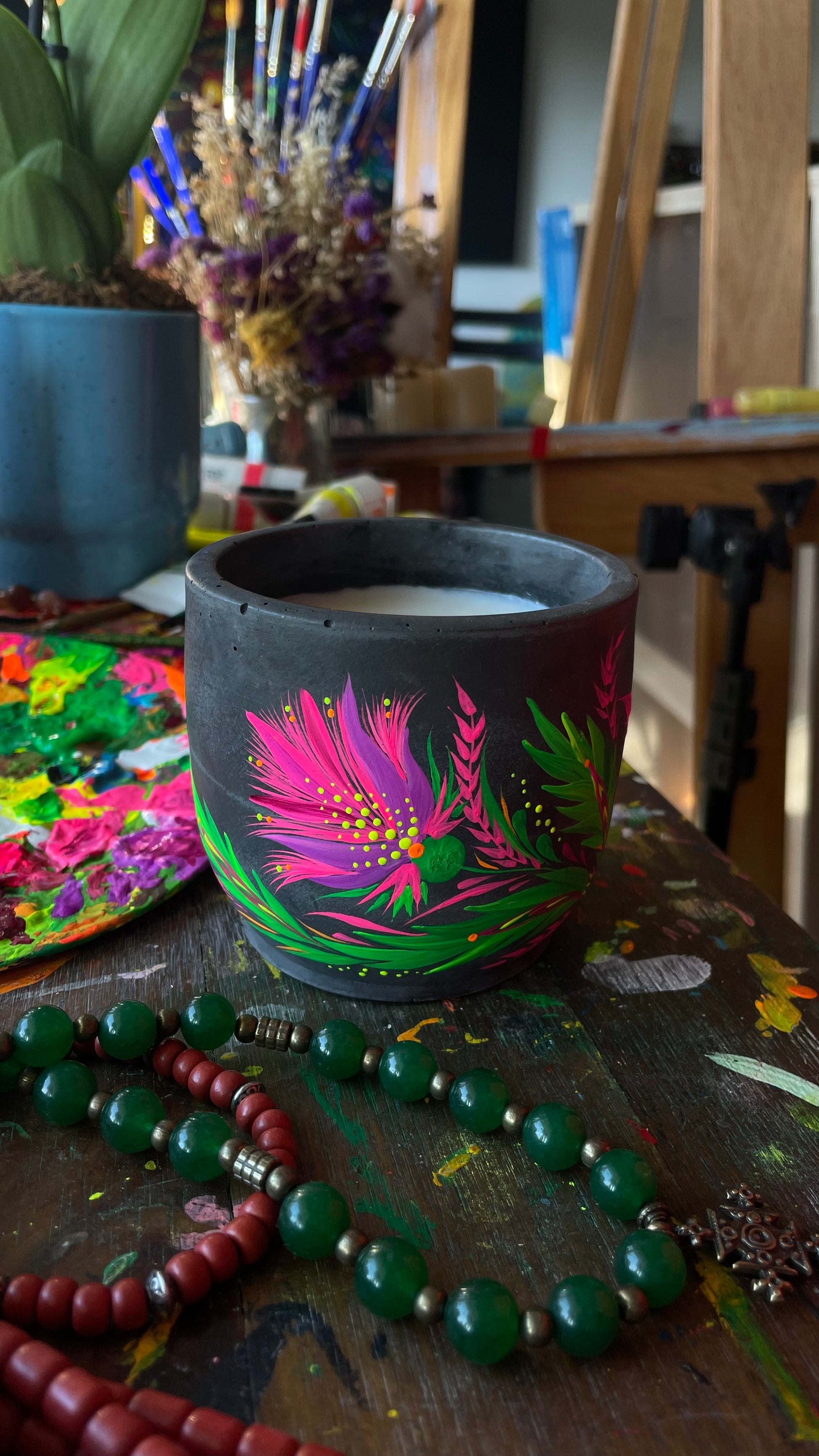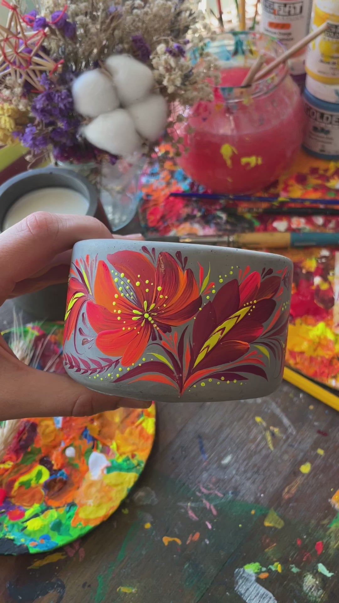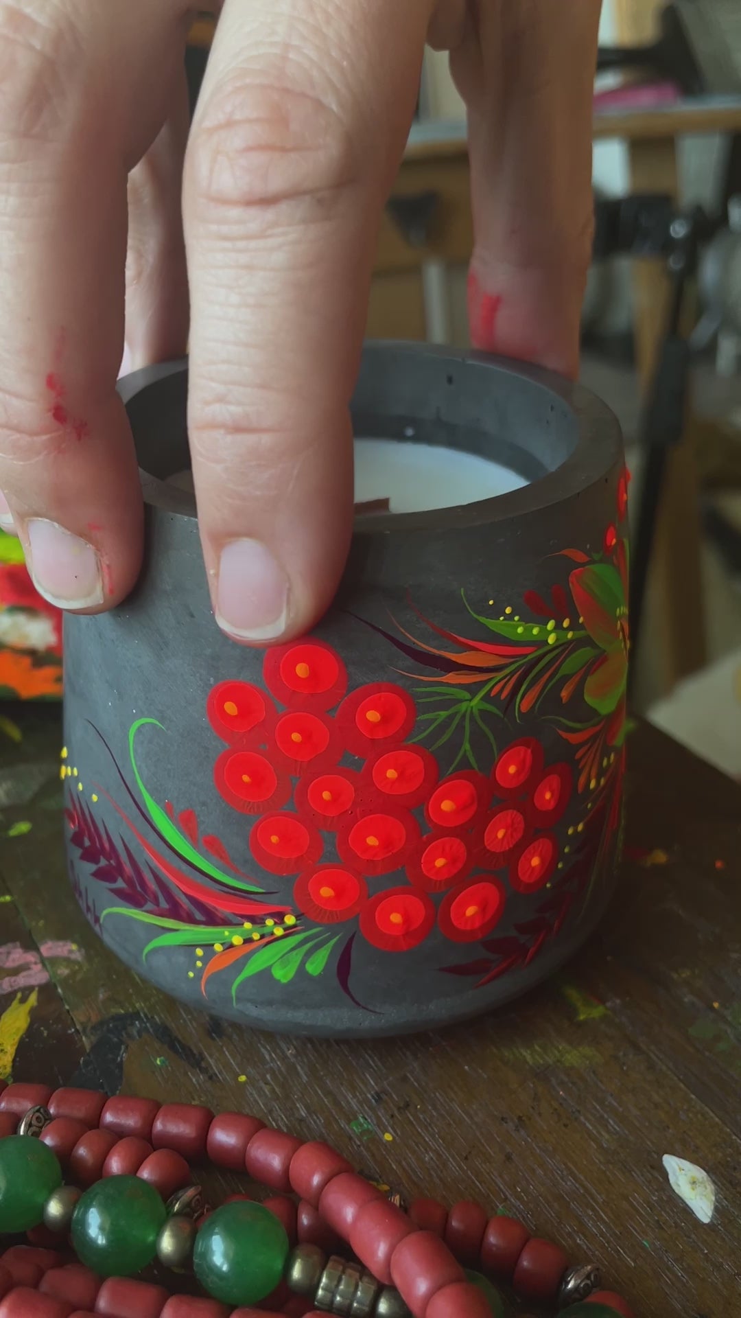 Indulge in the allure of custom-made candles crafted just for you. Each candle, hand-painted by artist Marina Malyarenko, boasts a unique design that adds an artistic touch to any space.
